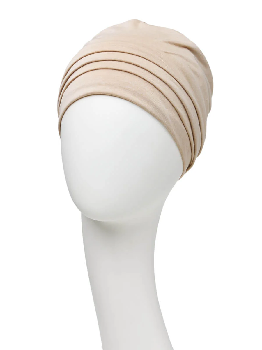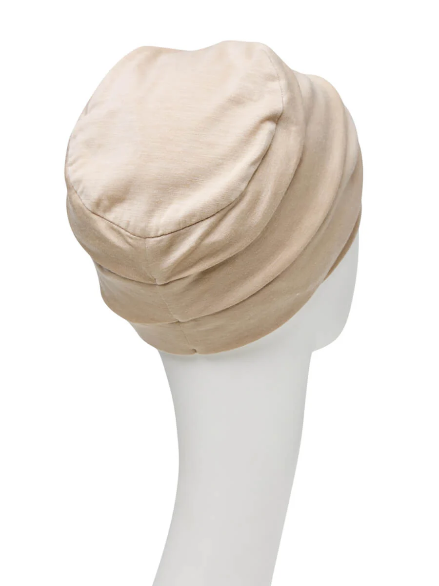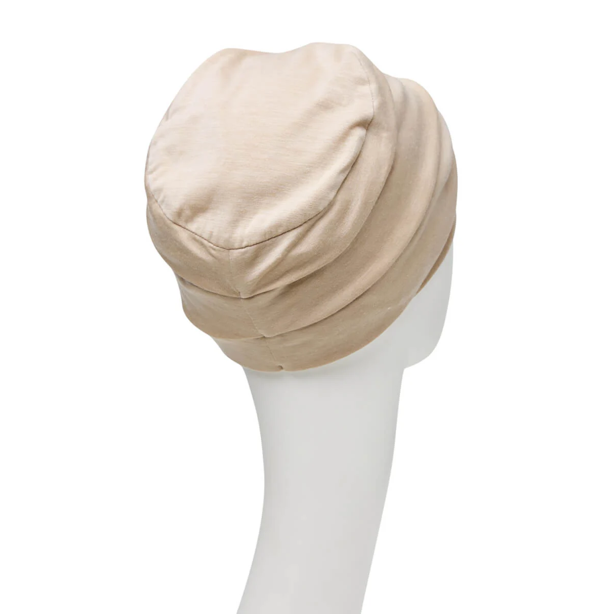 Turbanul are 3 straturi largi care sunt cusute frumos in fata deci modelul poate fi aranjat cu un aspect elegant, plisat. Straturile sunt putin mai largi pe lateral, oferindu-va optiunea de a trage si de a muta materialul in jur si astfel creeaza un stil unic si mai voluminos.