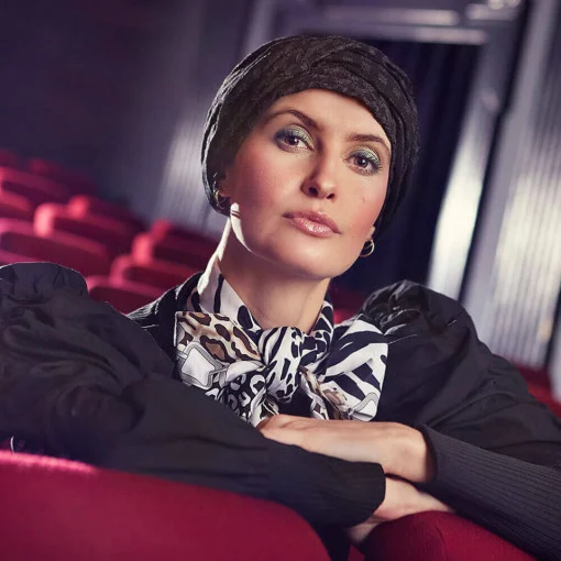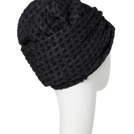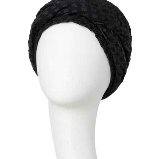 Negrul nu se demodeaza niciodata, asa ca aici va aducem echivalentul -little black dress-: Turbanul Emmy. Un set din doua piese, cu turban de baza si banda de sustinere, care ofera o mare oportunitate de aranjare. Banda poate fi usor purtata singura cu o peruca, parul natural sau un alt turban.
