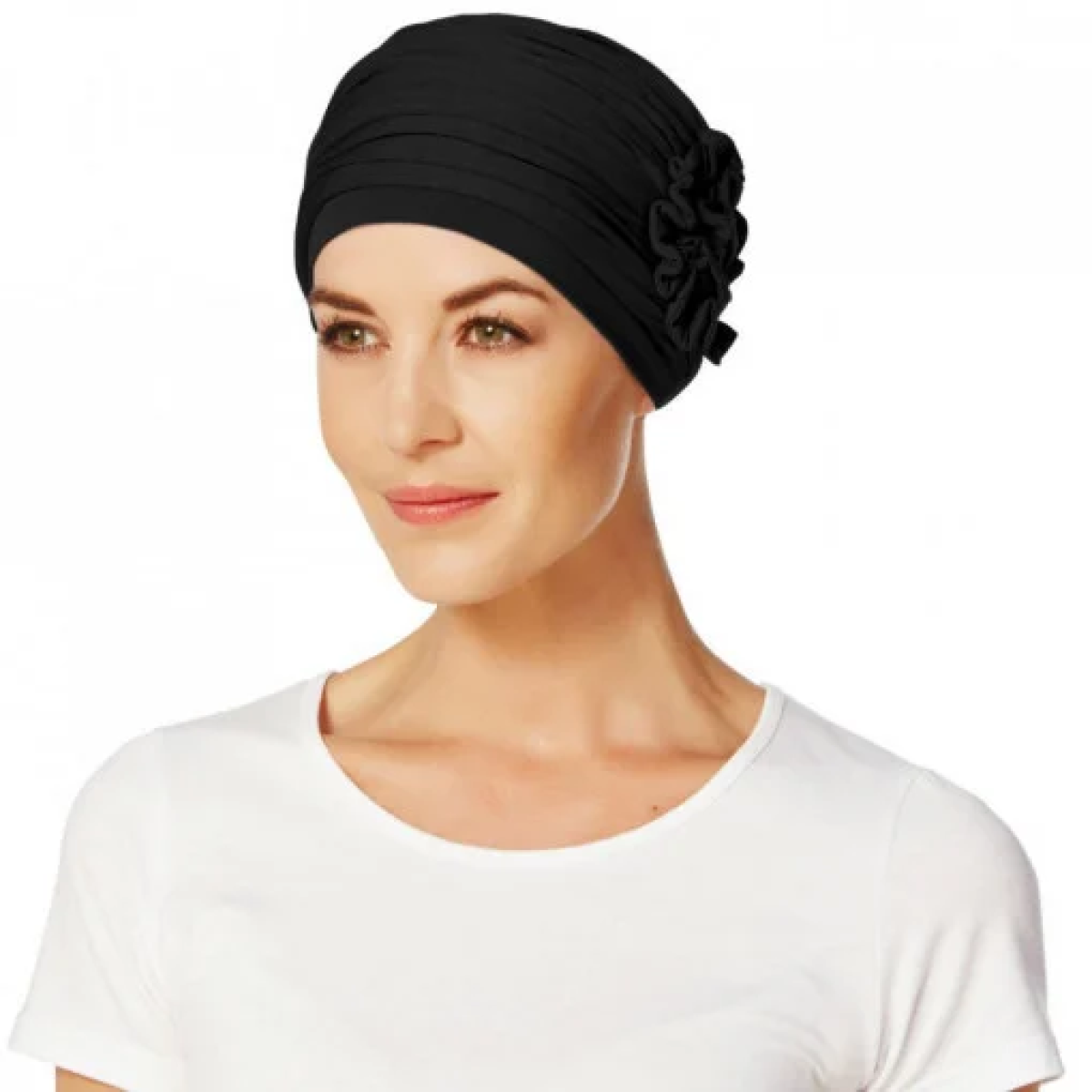 Dintr-un material natural, turbanul din bambus este lipsit de orice substante chimice si nu va irita pielea fragila dupa chimioterapie sau in cazul unui scalp cu par subtire si rar.