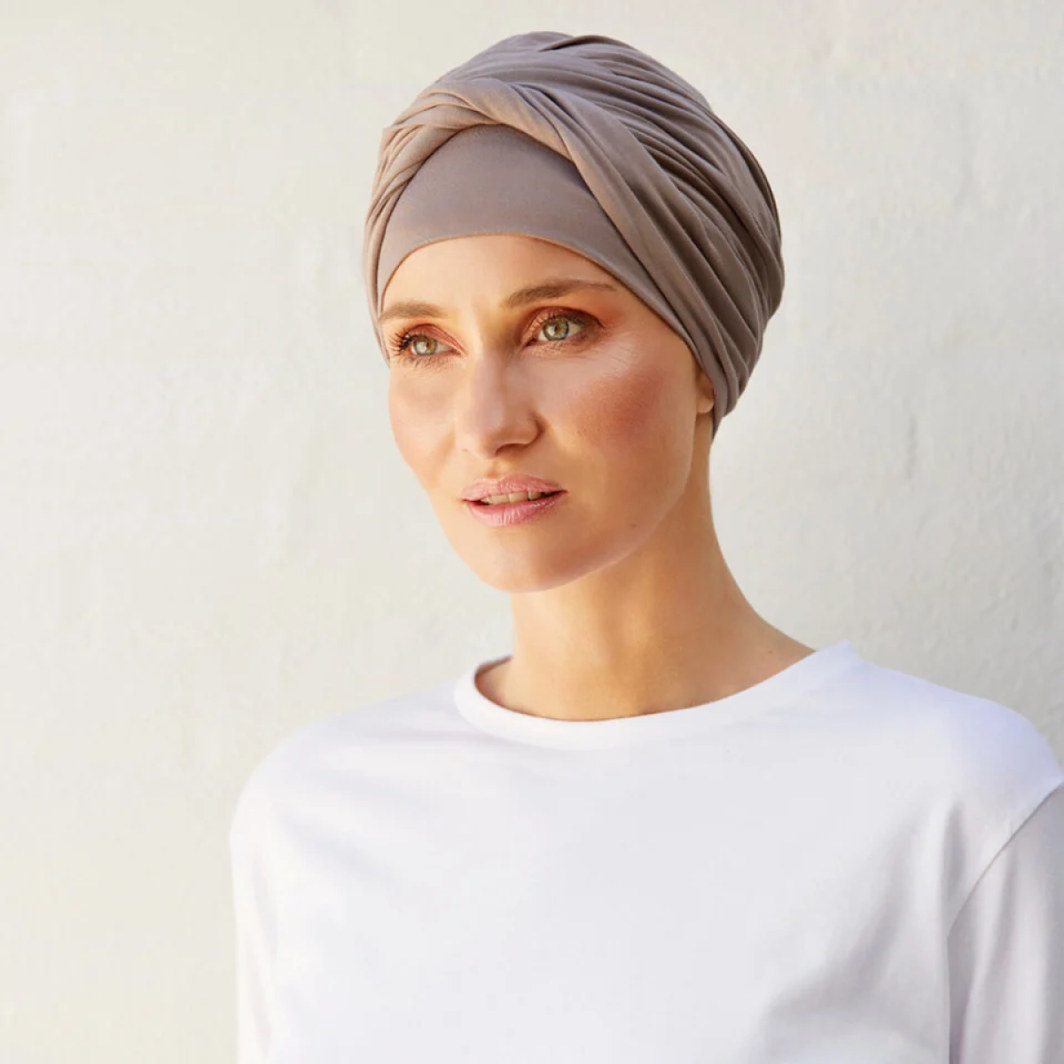Shakti, turbanul pentru chimioterapie de la Christine Headwear, este o alegere excelenta pentru garderoba ta, daca esti in cautarea unui accesoriu inteligent care nu necesita timp pentru un aranjament deosebit. Fabricat dintr-un material moale, extrem de confortabil, acest design asigura o buna stare de bine. Efectul anti-transpiratie ofera confort toata ziua. Nuanta moale se potriveste cu o larga varietate de tonuri ale pielii si se asorteaza perfect cu imbracamintea usoara de vara.