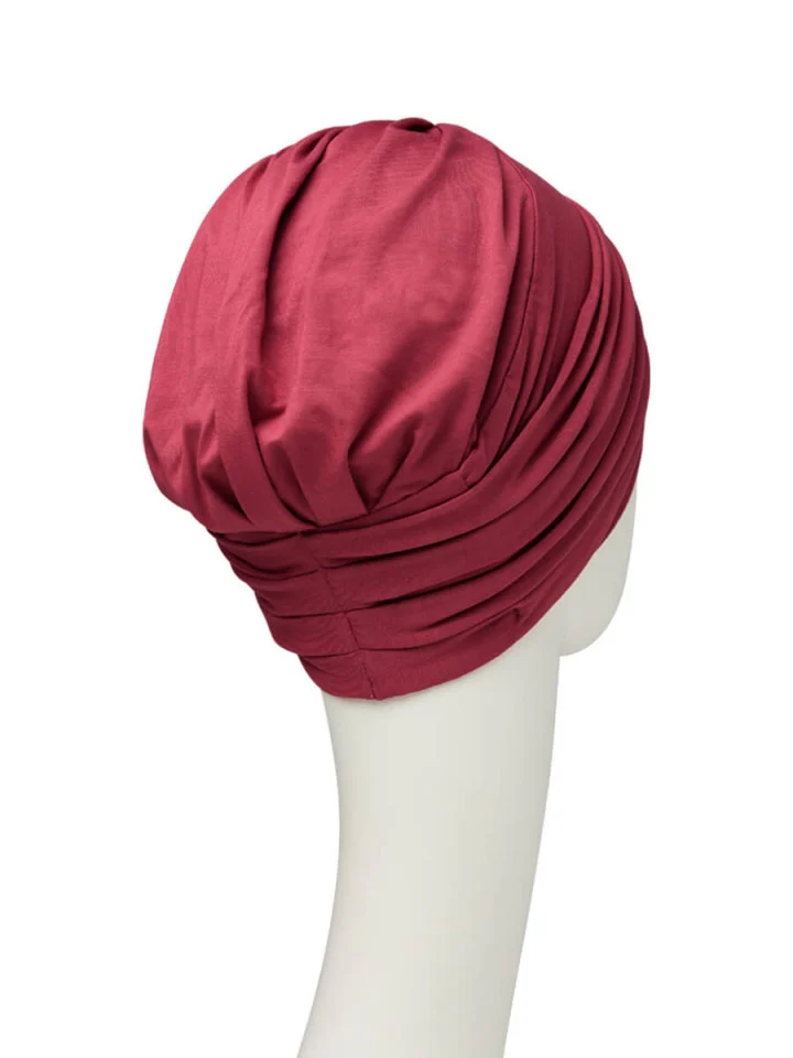 Shakti, turbanul pentru chimioterapie de la Christine Headwear, este o alegere excelenta pentru garderoba ta, daca esti in cautarea unui accesoriu inteligent care nu necesita timp pentru un aranjament deosebit. Fabricat dintr-un material moale, extrem de confortabil, acest design asigura o buna stare de bine. Efectul anti-transpiratie ofera confort toata ziua. Nuanta stinsa de rosu se potriveste cu o larga varietate de tonuri ale pielii si se asorteaza perfect cu imbracamintea usoara de vara.