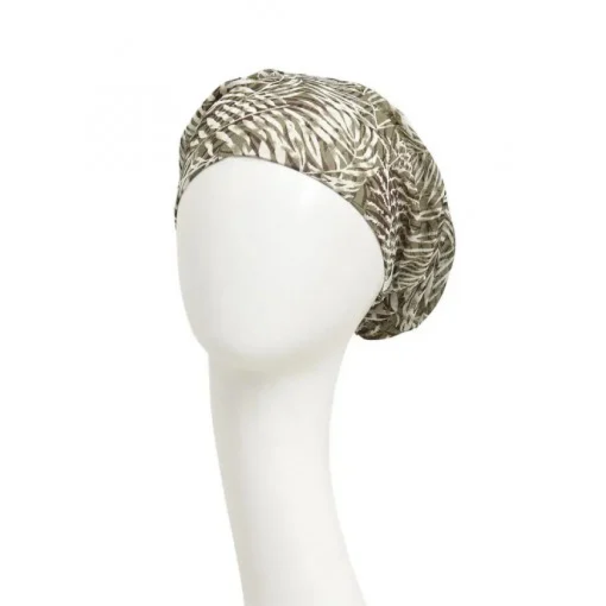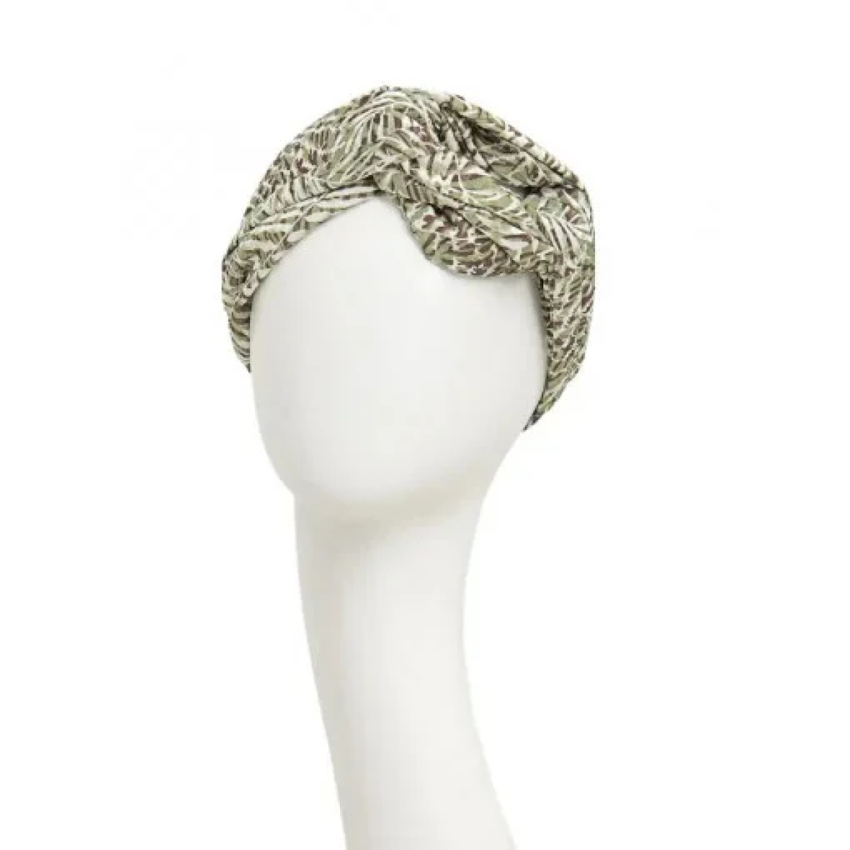 Are un design larg neted in jurul fruntii si pliuri mici in spate care confera un aspect elegant si volum frumos. Turbanul de baza este realizat cu exces de tesatura in spate, astfel incat sa poata fi imbracat cu un efect baggy sau o potrivire stransa, daca este bagat sub bentita.